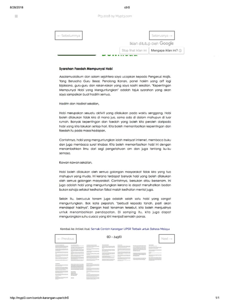 Menulis Perenggan Penutup Karangan yang cemerlang haruslah mempunyai penutup yang matang. Faedah mempunyai hobi Menurut Kamus Dewan Bahasa dan Pustaka hobi dapat didefinisikan sebagai aktiviti kegemaran yang dilakukan pada waktu senggang dan bukan merupakan pekerjaan utama. Tajuk Pengucapan Awam Contoh Isu Semasa Yang Sesuai Menarik Jika anda dipilih atau terpilih samada suka atau paksa rela untuk berucap di hadapan orang ramai jangan gentar.